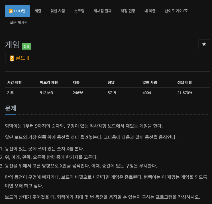 - 처음에는 bfs로도 풀 수 있을 거라고 생각하였지만 몇 가지 조건으로 인해서 어려움을 겪었다.