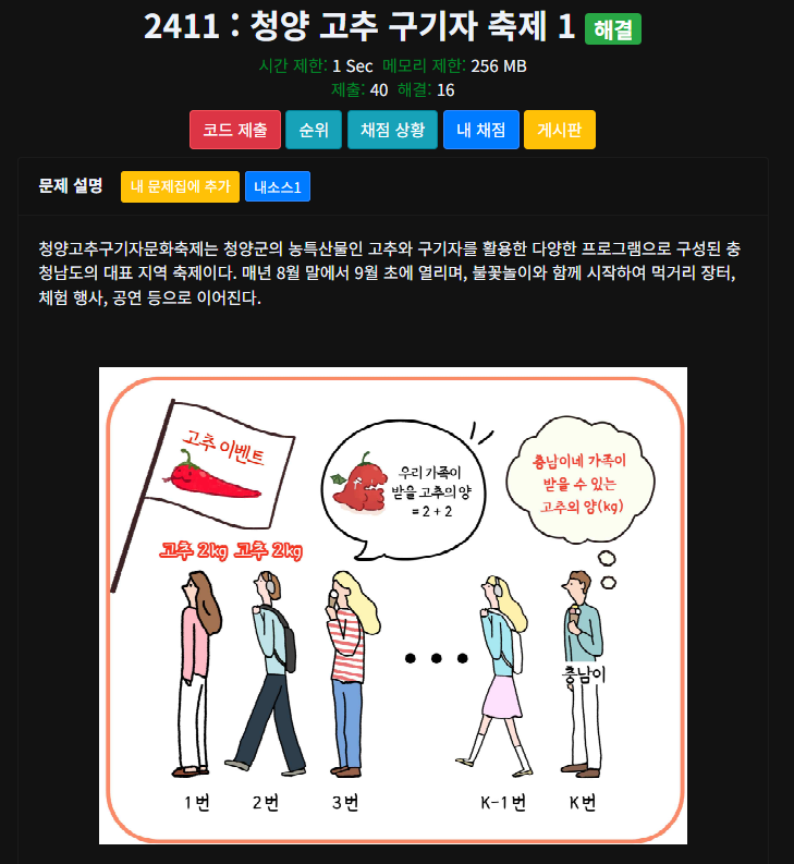 청양 고추 구기자 축제 (0), (1) - (BOJ 기준 브론즈 1~ 실버 5?)(구현, 누적합?)