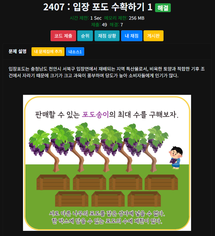 입장 포도 수확하기 (0), (1) - (BOJ 기준 실버 2~골드 5?)(그리디, 우선순위 큐)