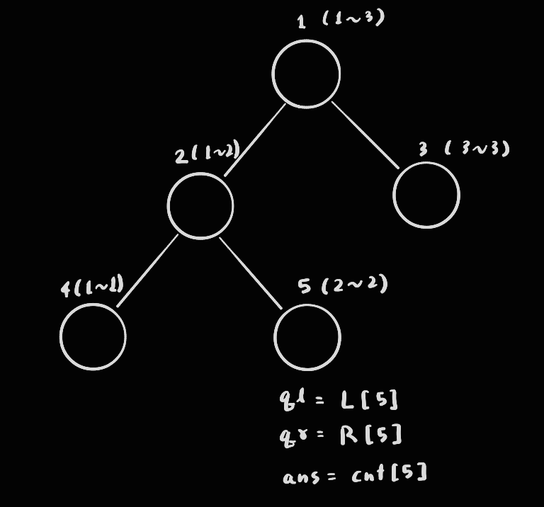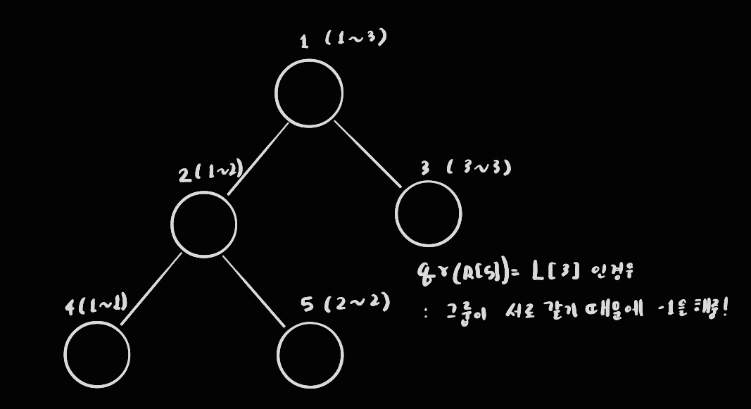 즉 여기서 알 수 있는 부분은 트리의 왼쪽 부분부터 탐색을 시작하기 때문에 qr과 L [node] 값을 비교해야 한다!