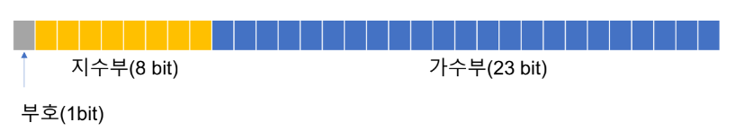- 32비트의 부동 소수 저장 형식을 사용함.