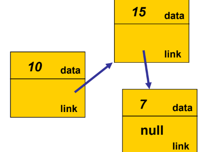 head → [data: 10 | link] → [data: 20 | link] → [data: 30 | null]