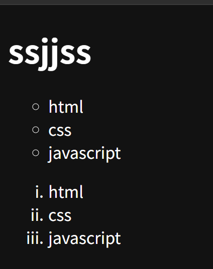 - 다음은 위가 원래 list-style-type과 list-style-position을 사용하여 표시한 것이고 아래가 list-style을 사용한 예시.