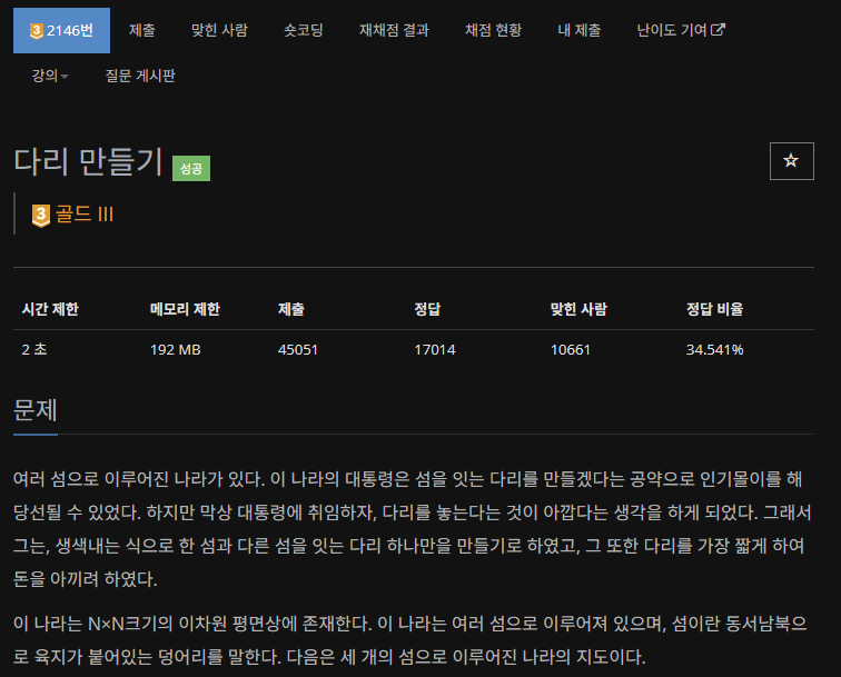 다리 만들기(BOJ 2146번)
