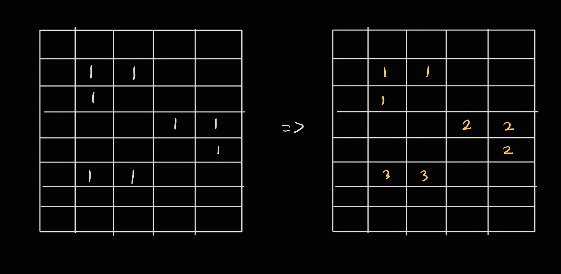 1. 만약 섬인 부분(즉 숫자 1인 부분)을 만나게 된다면 그 부분을 1번 섬으로 칭하고 나머지 부분을 BFS를 사용하여서 1로 채워준다.