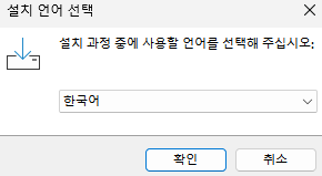 - 다운로드가 끝났다면 파일을 실행해 주고 언어를 한국어로 선택하고 확인을 누른다.