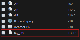 write.csv(x,"my_iris",row.names=F)