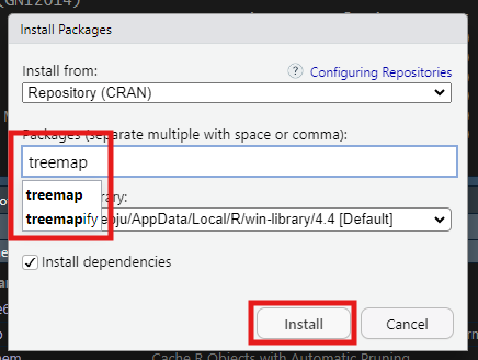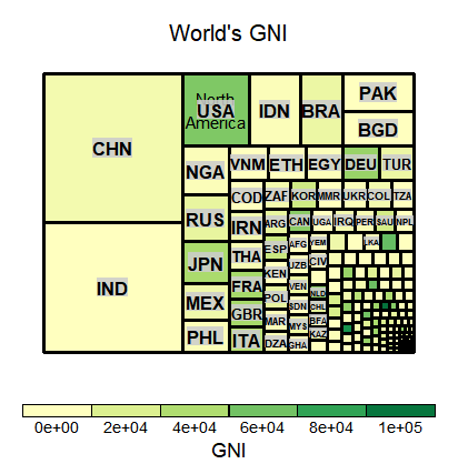 - GNI, 즉 국민 총소득을 보여주는 데이터셋으로 이를 일단 treemap을 작성하기 위해서는 treemap패키지부터 설치해줘야 한다.
