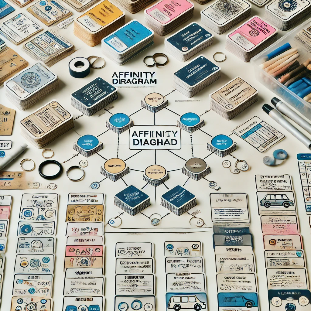 니즈에 대한 쪽지를 작성하고 이를 분류하고 배열하여서 묶음 별로 제목을 작성한다.