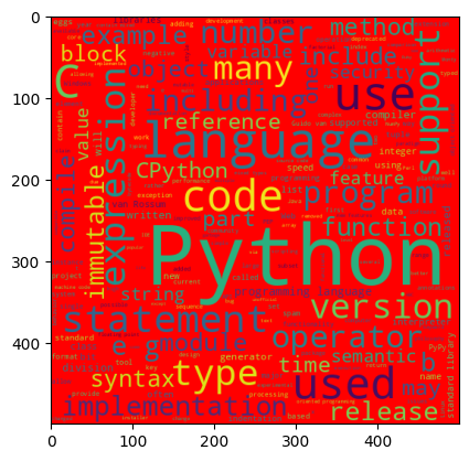 변수명=WordCloud(). generate(텍스트 변수명): 텍스트 기반으로 wordcloud생성 plt.imshow(변수명): 문자열 기반의 데이터를 시각화해서 출력해 준다.